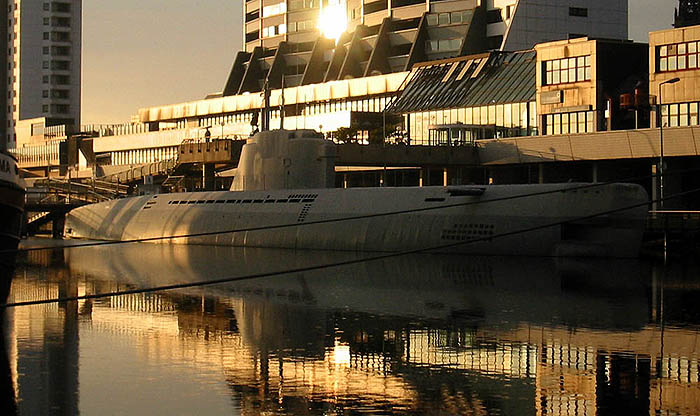 Die "Wilhelm Bauer" in der schönen Juni-Abendsonne – unserer unerklärlichen Nostalgie gegenüber dieser Kriegswaffe (und nichts anderes ist es ja) durchaus förderlich