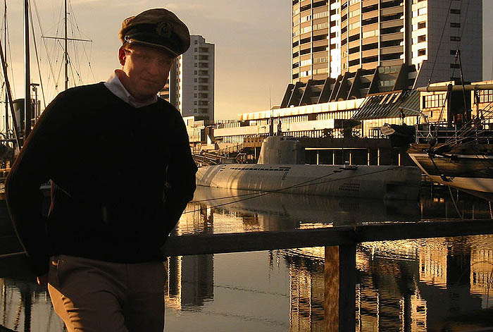 Feister Kaleun vor Hafenkulisse