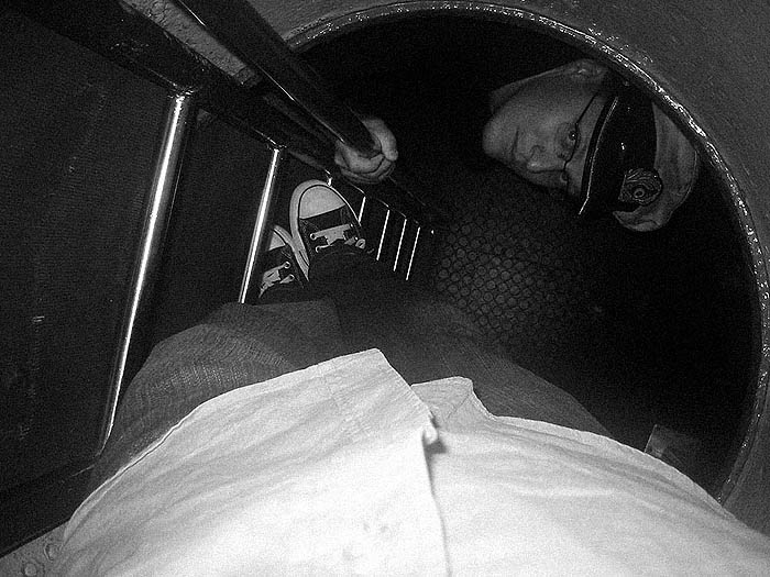 Blick nach unten auf den (jetzt) Gummiboden der Zentrale. Höher gings leider für Normalsterbliche nicht.