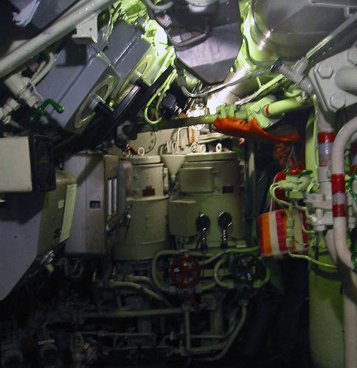 Diese grauen Zylinder hinten gehören zur Lenzpumpe der Zentrale. Mit ihr wurde