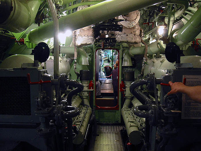 Schiffsdiesel und Tür zum E-Maschinenraum
