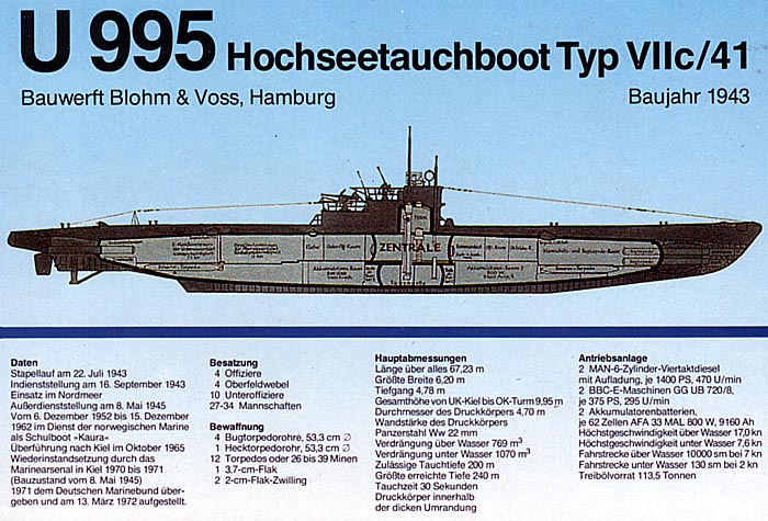 Ein beliebtes Ausflugsziel, auch für weniger UBoot-Interessierte. Das Einhüllen-Hochseetauchboot U995 vom Typ VIIc/41 in Laboe bei Kiel. Allein der Typ VIIc wurde während des Zweiten Weltkrieges 661mal gebaut. Der Nachfolger des Typ VIIb gilt als meistgebautes Kriegsschiff der Welt. Heute existiert nur noch dieses eine Exemplar!! |
